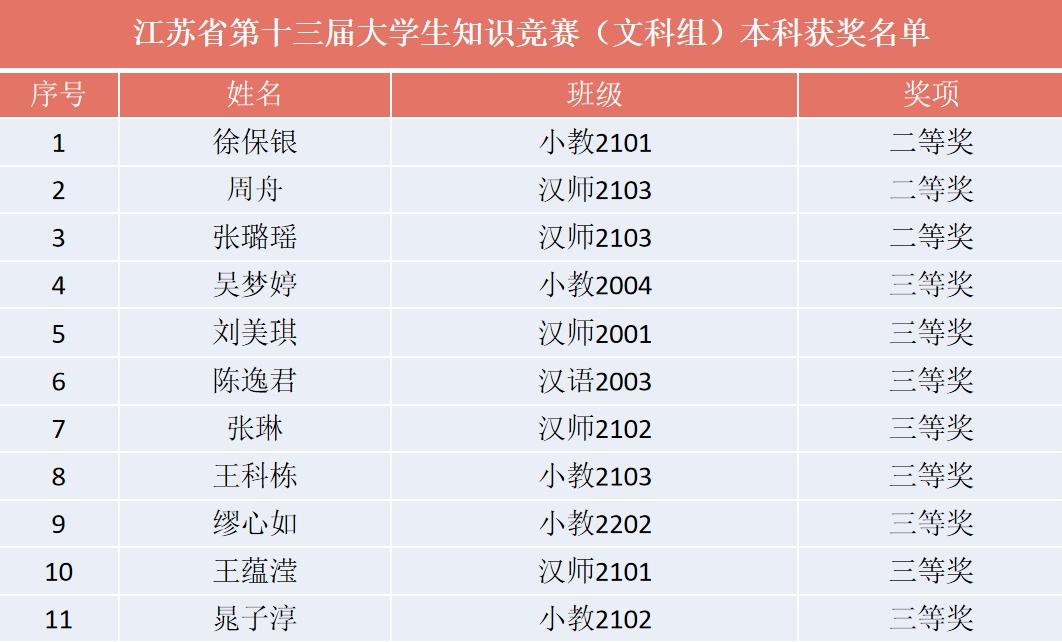 人文学子在江苏省第十三届大学生知识竞赛(文科组)中斩获佳绩