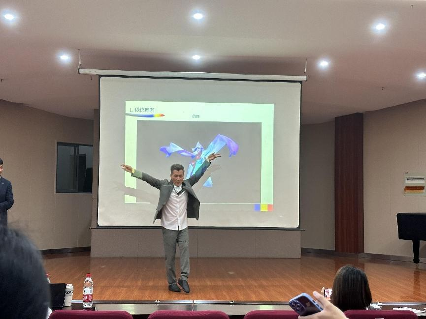 6月25日上午,金教授为新葡的京官网师生进行了题为:“韩国创作舞蹈的发展历程——以金龙喆舞剧《夜镜台》为例”的讲座。讲座中,金龙喆教授分别从传统舞蹈、新舞蹈、创作舞蹈和个人研究,四个方面向师生们展示了韩国创作舞蹈的发展历程。此外,金教授通过现场表演韩国不同舞蹈形式的舞段,使在场师生对韩国传统舞蹈、新舞蹈和创作舞蹈各自的舞蹈特色一目了然,从而能够清晰地区别三种舞蹈在表演上的异同。金教授优美、细腻的表演也征服了在场师生,他精湛的舞艺令人惊叹。最后,金教授以自己创作的舞剧《夜镜台》为例,对如何将韩国传统舞蹈中的元素运用于创作舞蹈中进行分析。金教授是韩国创作舞蹈的第三代编导中的代表人物之一,在1992年成立了自己的舞团(金龙喆舞蹈团),致力于韩国舞路的创作化,艺术化和大众化,探寻亚洲文化与韩国民族精神的融合。他的舞剧《夜镜台》刻画了韩国现代人们的生活和形象,对生命轮回进行了超越“未来”的传统意义的再闸释。