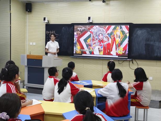 “品戏韵风华”戏曲鉴赏课主要围绕中华五大传统戏剧,介绍戏曲的定义与基本形式,带领同学们了解中华戏曲的基本发展历程。课程融汇了传统戏曲的深厚积淀与课堂的互动性、故事性,通过不同剧种经典片段的赏析促进学生辨别剧种主要特征,在感受各大传统戏剧不同特色的过程中,增强民族自豪感与文化认同感。