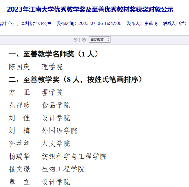 图1:2023年350vip8888新葡的京集团优秀教学奖及至善优秀教材奖获奖公示