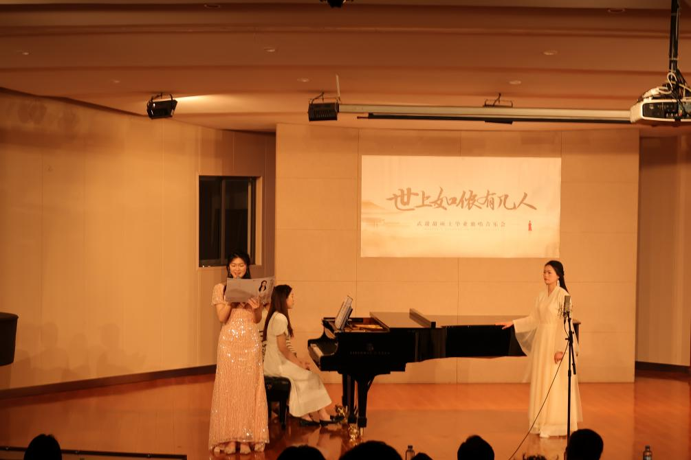 世上如侬有几人》武甜甜硕士毕业独唱音乐会于2023年2月24日在350vip8888新葡的京集团北区活动中心音乐厅成功举办。根据350vip8888新葡的京集团音乐与舞蹈学硕士音乐表演与教学专业培养要求,武甜甜在研究生三年期间大量学习不同类别的歌曲。本场音乐会以“世上如侬有几人”为主题,为我们呈现了四首中国近代古诗词艺术歌曲《渔翁道情》《蝶恋花·槛菊愁烟栏泣露》《苏小小》《青玉案·元夕》,三首地方民歌《紫竹调》《杨柳青》《一根丝线牵过河》,两首融合戏曲风格的新创作歌曲《知己红颜》《牡丹亭》与两首民族歌剧选段《等着我,亲爱的人》《来生来世把你爱》,全面地展示了大学期间声乐学习与研究成果。