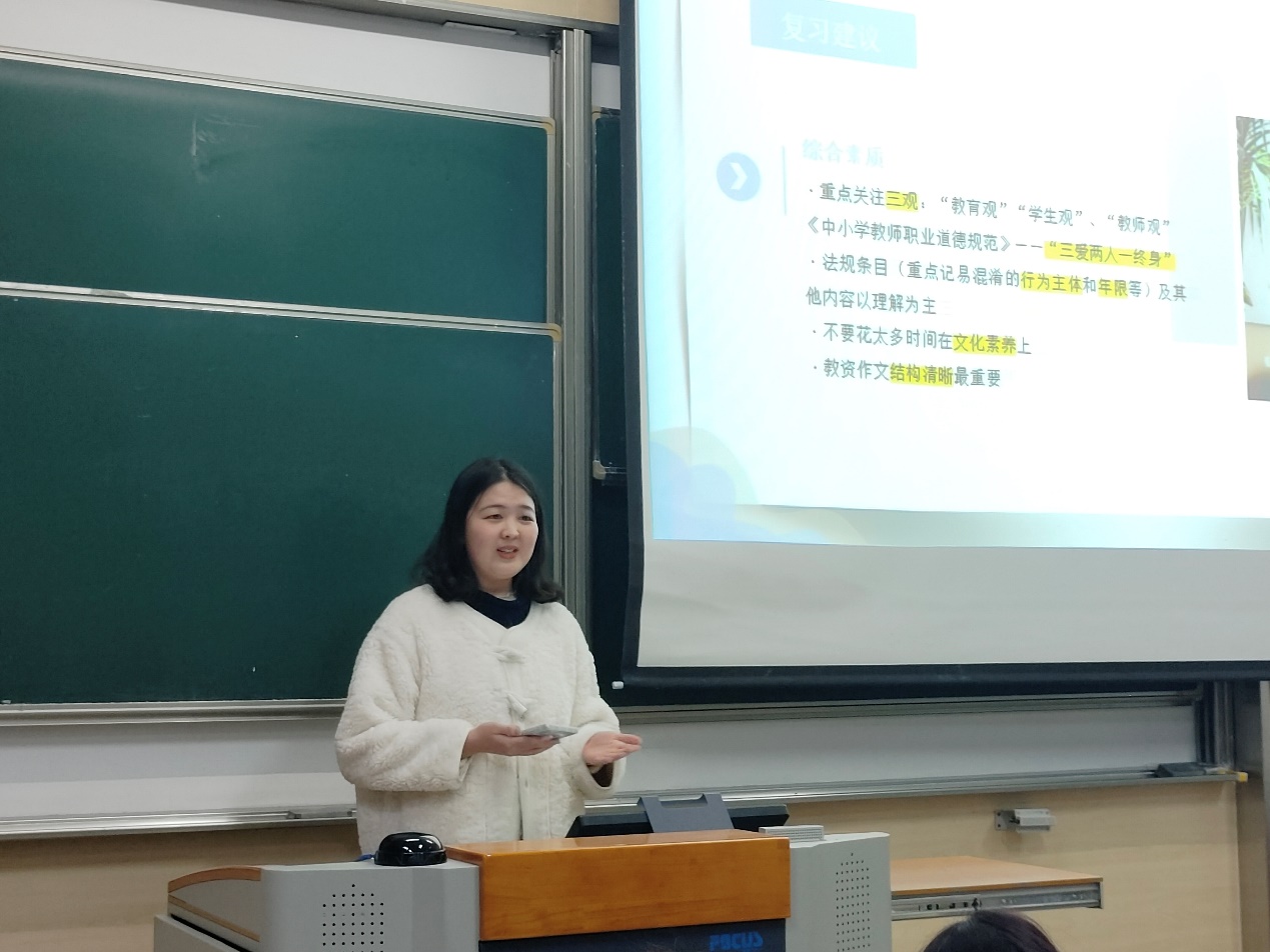 2月28日晚,350vip8888新葡的京集团2023年教师资格证备考经验分享会在第一教学楼C101室顺利举行。活动邀请了五位在教资考试中取得优异成绩的同学就考试经验做分享。本次分享会由350vip8888新葡的京集团学习发展中心承办,150余名同学积极到场参与。