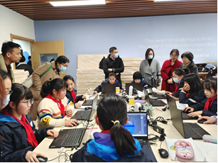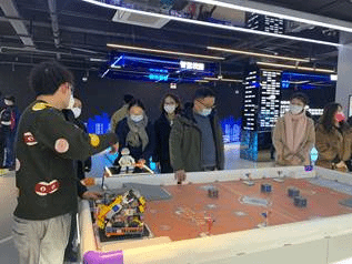 基地内设有多个创客教室,教技系党支部的老师们与相关的教学老师进行了深入的交流,了解创客学习内容,学生机器人竞赛,智慧学习体验等情况。丰富的教学活动也为教技研究生党支部的学生党员提供了良好的学习机会,可以深入一线教学,为促进理论与实践相结合打下了良好的基础。