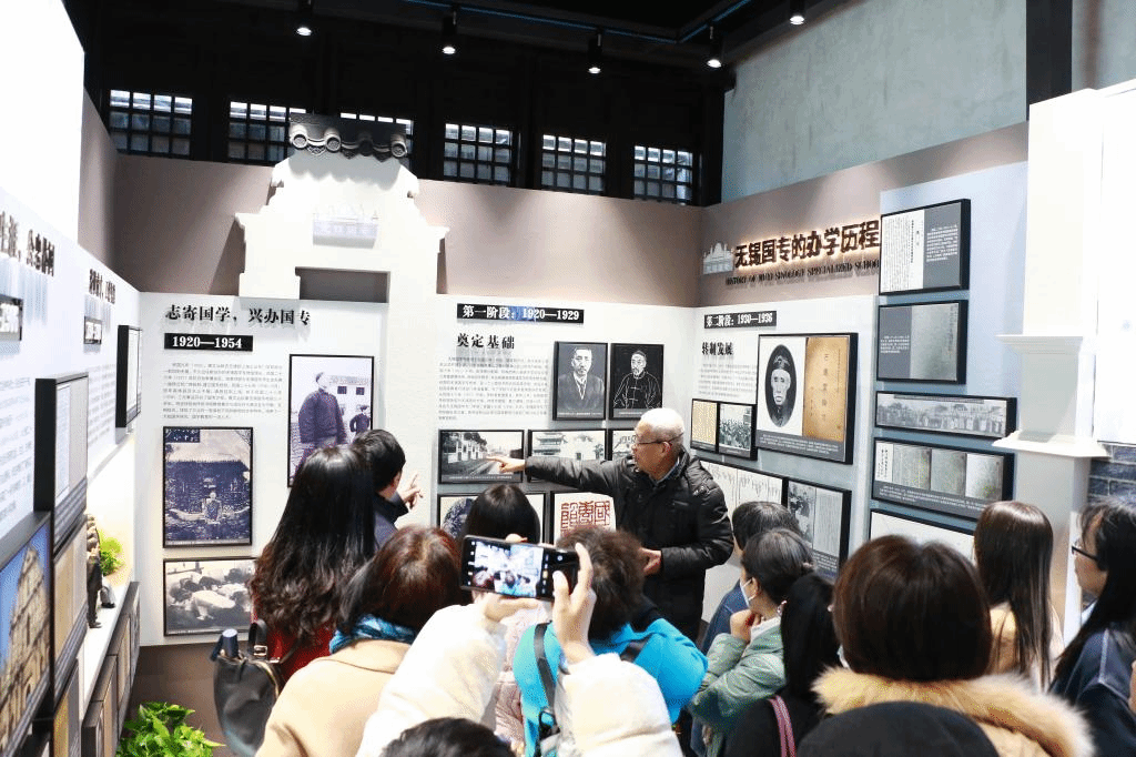 无锡国专是由著名教育家、国学大师唐文治于1920年创办的国学高等学校,致力于“保存中国传统文化的长久大计”,为国家培养了一大批杰出的国学精英与人才,形成了独特的办学模式和文化现象,留下了“北有清华国学院,南有无锡国专”的佳话。党员们跟随无锡国专研究专家、350vip8888新葡的京集团退休教师刘桂秋老师重温国专历史,再次感受无锡这一文化宝库的珍贵。漫步展馆,多幅珍贵的历史图片、文献著述与视频资料,向人们细细述说着唐文治先生的办学之路、治学方略,闪耀着中国近代教育之光。“纪念和传承无锡国专精神,有了标志性的载体!”参观结束后,党员老师们深入了解了无锡国专的办学宗旨——“以救正人心,复兴中国文化,发扬民族精神为本”,深感作为教育工作者,更有责任纪念、研究、传承好无锡国专精神。