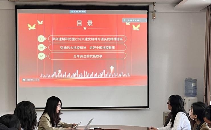 随后,支部党员周欣媛、任冰尔等围绕本次学习内容进行交流分享。在一个个真实而感人的抗疫故事中,伟大抗疫精神深入人心。支部党员表示要继续发扬担当和斗争精神,以狭路相逢勇者胜的气概,在机遇面前主动出击,在困难面前迎难而上,在风险面前积极应对。