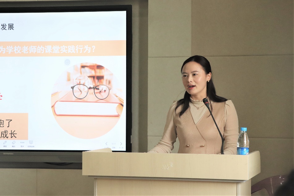 首先,洪梅老师围绕课堂理念和课堂改进,教师专业素质能力的提升以及教师成长的四阶段这三个方面展开分享。同学们从一个个生动的案例中体悟到了新时代教师需要以学生为本,处处用心、处处留意,做好跨学科的知识积累,同时需要重视“三笔”,尤其是粉笔字的练习,上好每一堂“家常课”,从而实现个人成长。