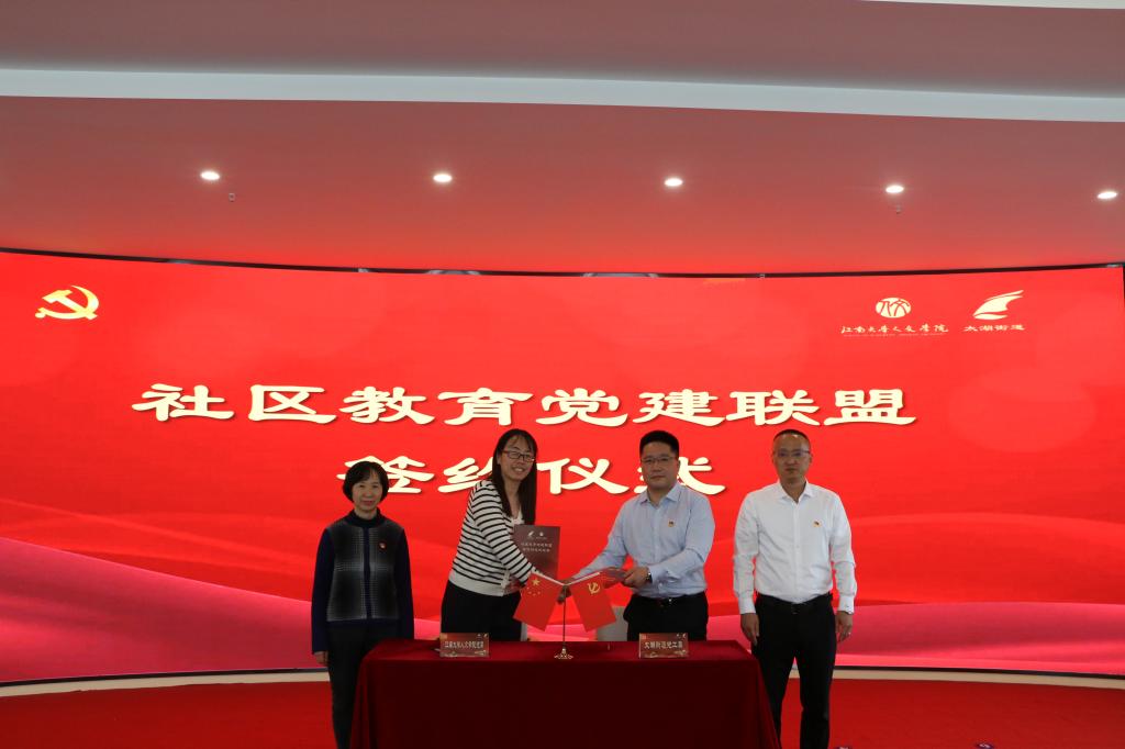 350vip8888新葡的京集团党委与无锡经开区太湖街道党工委社区教育党建联盟的正式启动,是以党建为引领,在家门口搭建舞台,在教育、文艺、体育、志愿、实践等领域,打造强化思想政治引领、传承优秀传统文化、培育文明新风尚等多种功能的社区教育阵地,实现党建、思政教育与专业教育的多元融合,以高质量党建引领高质量社区教育活动,打造高校“三全育人”新格局。