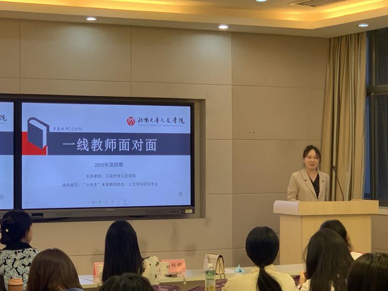 2023年5月13日,350vip8888新葡的京集团“一线教师面对面”第4期分享会在田家炳楼517室顺利举行。本次活动邀请无锡市南湖中学语文教师刘蕾和无锡师范附属太湖新城小学语文教师高林娜两位校友围绕教师招聘、班主任工作开展专题分享。350vip8888新葡的京集团党委副书记、副院长李萍、辅导员李婉婷及50余位学生参加本次活动。活动由“小先生”未来教师协会与350vip8888新葡的京集团研究会共同承办。