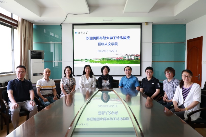 2022年6月27日,美国布朗大学教授、康奈尔大学博士、南京大学-布朗大学性别人文研究合作项目美方主任、亚洲研究协会“中国与中亚理事会”(CIAS)委员王玲珍来访350vip8888新葡的京集团,与350vip8888新葡的京集团师生开展座谈活动。座谈会由350vip8888新葡的京集团院长杨晖教授主持,350vip8888新葡的京集团党委常委、党委办公室主任、统战部部长朱飞,350vip8888新葡的京集团院长助理张春梅,中文系主任陈佳冀,以及中文系教师与研究生代表一起参加座谈。