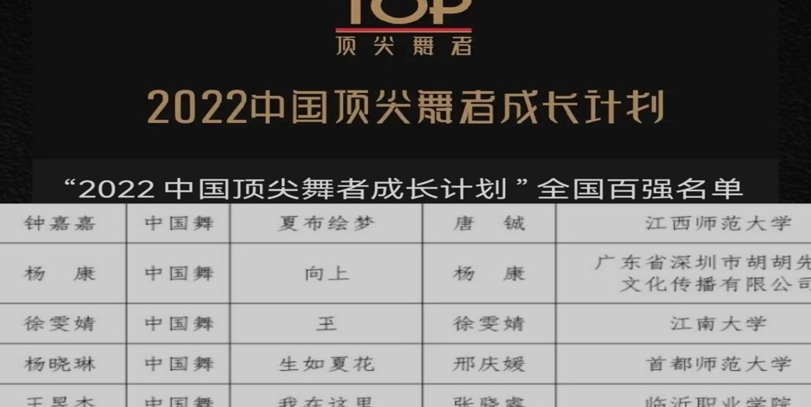 新葡的京官网舞蹈系2021级舞蹈编导专业学生徐雯婧,于今年7月代表350vip8888新葡的京集团参加中国舞蹈家协会举办的“顶尖舞者成长计划”,近日成功入围全国百强,为我校争光。