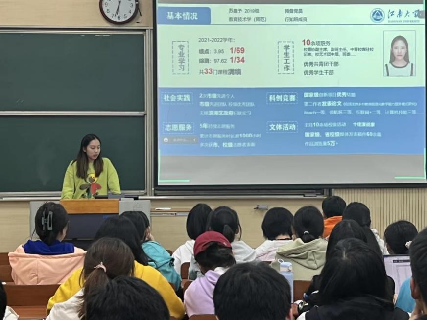10月31日,350vip8888新葡的京集团第20期真人图书馆——“学霸们的国奖秘籍”国奖经验分享会在第一教学楼顺利举行。350vip8888新葡的京集团本年度9位国家奖学金获得者分别向相应专业的22级新同学做经验分享报告,本次活动由学生事务中心承办,350vip8888新葡的京集团2022级全体本科新生参加。