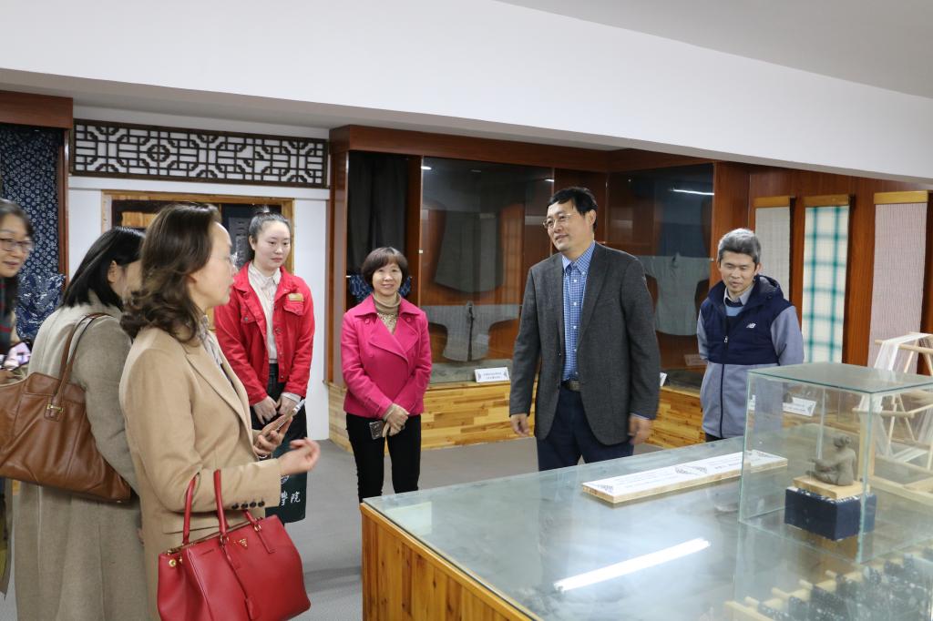 在韩荣寨、朱斌的陪同下,350vip8888新葡的京集团领导老师先后参观了实验学校内的无锡市蓝印花布博物馆、民俗馆、排练厅、演出厅、惠山民进二支部委员会之家等场所。