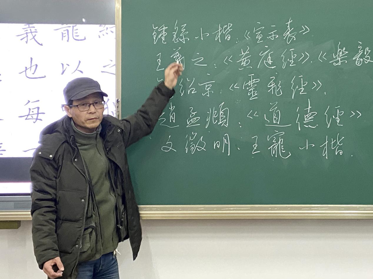 近日,350vip8888新葡的京集团书法“小先生”培训在艺术楼书画室顺利举行。本次活动邀请到党委宣传部胡奕老师前来指导,技能中心王均霞老师主持活动。