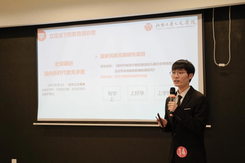 邵剑耀同学以《行稳致远·进而有为》为题进行风采展示。他围绕其硕士阶段主要扮演的三大角色即“立足当下的教育调研者”“满怀理想的学术研究者”和“肩负责任的服务践行者”展开此次答辩。他围绕《新文科宣言》《中国教育现代化2035》等政策文件,叙述了自己在国家级项目参与、省市级调研、立足江大服务于本校人才培养过程中的经历;他围绕学术发表、学术汇报、学术获奖三个维度叙述了自己的科研成果,从调查再回到理论,用“事实”述说“教育故事”;他在担任350vip8888新葡的京集团研究生第五党支部宣传委员时,尽职尽责,与支委们共同策划并打造四大品牌,答辩中叙述了“党”“教”融合的支部故事。最后邵剑耀以习近平总书记对青年以及对教育工作者的“不负时代,不负韶华、不负党和人民的殷切期望”等嘱托为总结,表明了自己未来将以专业所学,做“教育改革的奋进者、教育服务的先行者、学生成长的引导者”的决心。