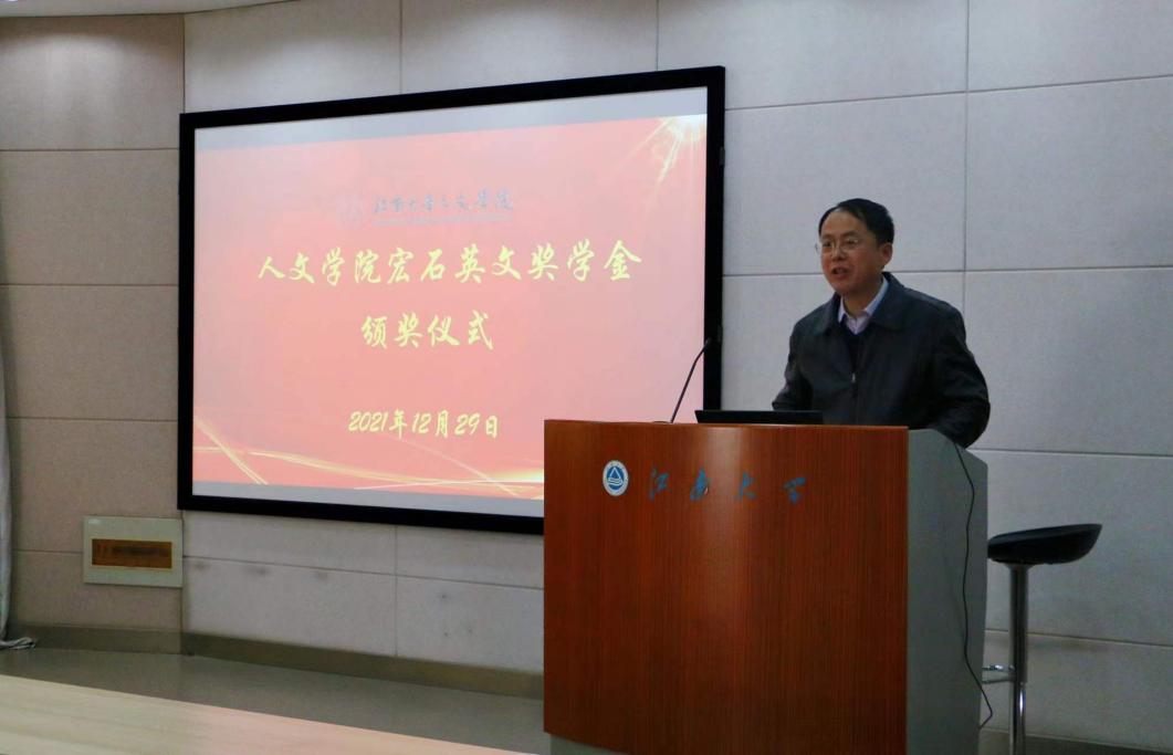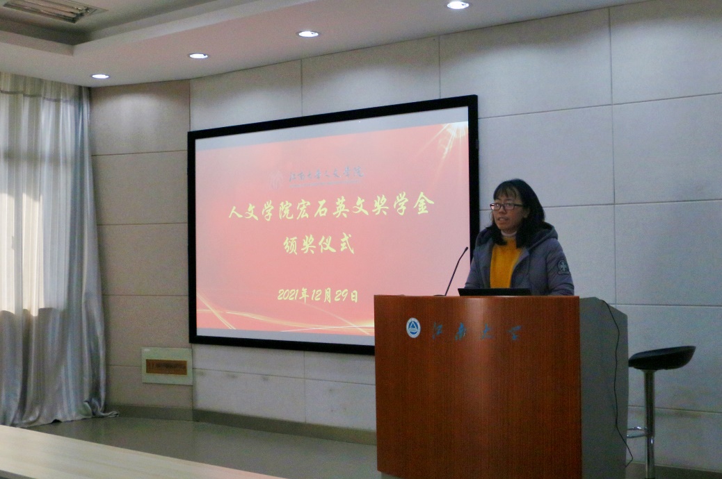 12月29日,350vip8888新葡的京集团宏石英文奖学金颁奖仪式在田家炳506会议室举行。学院校友会秘书长、宏石商业地产创始人、上海纽谷贸易有限公司总经理徐宏伟,350vip8888新葡的京集团教务处副处长武戈,无锡市风格艺术品有限公司董事张剑芳,无锡日月弹琴行总经理蒋宝伟,如家地产财务总监陈月女士,350vip8888新葡的京集团党委副书记、副院长李萍,分团委书记赵丽敏,辅导员刘昕旎以及获奖学生共同参与了此次颁奖仪式,会议由辅导员邵祥岚主持。