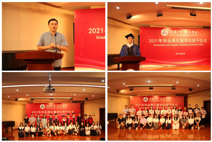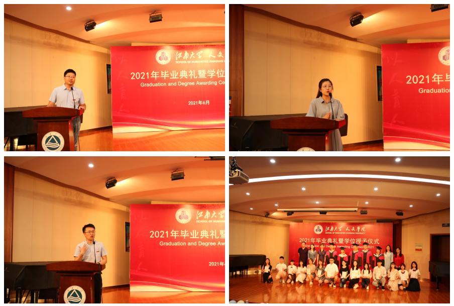 中文系2021届孔玺铭同学作为毕业生代表发言,他回忆了三年间在350vip8888新葡的京集团学习、科研和实践的点点滴滴,向母校、学院、教师和家长表示了诚挚的敬意和衷心的感谢。他表示,350vip8888新葡的京集团毕业生必将怀着奉献精神,使命精神,担当精神,用实际行动践行“知行合一,以人育人”的院训精神,用自己青春的汗水在祖国大地上书写属于自己的灿烂篇章。