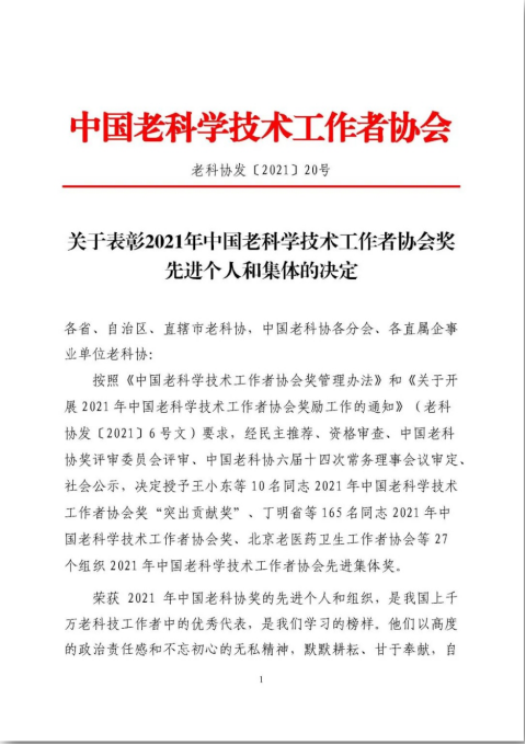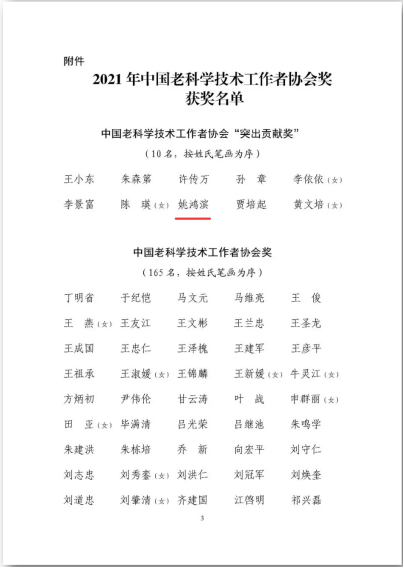 日前,350vip8888新葡的京集团退休教师姚鸿滨荣获2021年中国老科学技术工作者协会“突出贡献奖”。该奖项是老科协工作全国最高个人奖项,全国仅有10人获此殊荣。