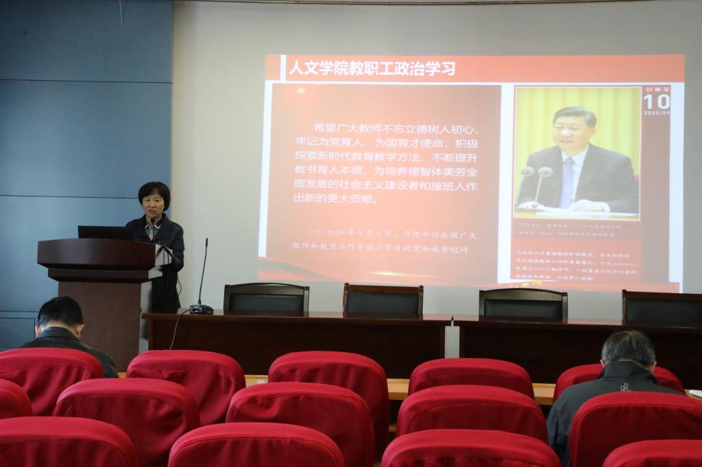 会上,党委书记姚剑英领学了中国共产党第十九届中央委员会第五次全体会议的会议精神,她传达领学“十四五”时期经社会发展的指导方针、主要目标、重点任务,以及传达加强党中央集中统一领导,推进社会主义政治建设,健全规划定制和落实机制等内容。她指出实现“十四五”规划和二〇三五年远景目标,意义重大,任务艰巨,前景光明。学院教职工要紧密团结在以习近平同志为核心的党中央周围,同心同德,顽强奋斗,为全面建设社会主义现代化国家贡献自己的力量。此外,她还领学了中央办公厅、国务院办公厅发布的《关于全面加强和改进新时代学校体育工作的意见》《关于全面加强和改进新时代学校美育工作的意见》;《习近平谈治国理政》第三卷。全体教职工认真领会了学习内容,一致认为此次政治学习有凝聚共识,明确方向的作用,有助于更好的立德树人。此外,会上姚剑英还通报了近期的学生就业情况,副院长于书娟通报了教学工作安排。