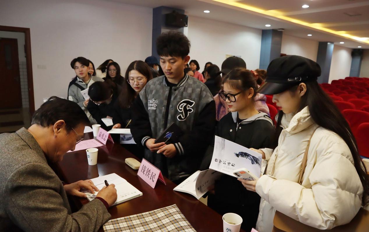 之后,350vip8888新葡的京集团副院长王芳老师讲话。她围绕作者钱铁民先生的科研情况和治学精神对大家做了介绍。她讲到,钱老师在专业领域造诣颇深,《缥缈孤鸿影——阿炳研究文集》是钱老师多年研究成果的集成之作,整合了其数十年来与阿炳有关的亲身经历,不仅深具学理性,而且对有关阿炳的一些颇有争议的问题做出了回答。此外,王老师指出,任何一项学术研究的完成都需要经历一个相当长的过程,它需要不断地采集资料,逐一求证事实,在此基础上再进行整合、思考、分析。王芳老师希望参会的同学们能够学习钱铁民先生专一、精思的治学精神,特别是350vip8888新葡的京集团将来要从事文化文艺工作的同学们,“肩负着启迪思想、陶冶情操、温润心灵的重要职责”,应坚持正确的治学精神、涵养良好的道德情操,为新时代的文化文艺工作贡献自己的力量。在活动的最后,钱先生向学院以及参会的同学分别赠与了这本新书及他的其他音乐研究书籍。