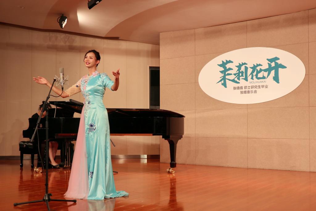 本次毕业独唱音乐会展现了张倩倩较强的民族声乐演唱能力,为观众们奉献了一场精彩的视听盛宴。从本科到研究生,张倩倩已经在无锡待了七年,在350vip8888新葡的京集团的培养下不断成长进步。在350vip8888新葡的京集团“声乐表演与教学”方向的研究生培养计划中,学生不仅需要具备一定的学术研究能力,发表有质量的学术文章,完成研究生毕业论文,还需要通过毕业晚会来展现专业技能的学习成果。本场音乐会的曲目选择,涉及不同地方的民歌、古诗词艺术歌曲、戏曲风格歌曲,以及歌剧选段和当代创作歌曲,是张倩倩在研究生阶段声乐学习的一次综合展示。