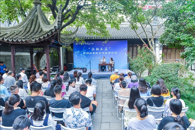 为纪念民族音乐家阿炳诞辰125周年,9月15日下午,中国音乐家协会、中共江苏省委宣传部、江苏省文学艺术界联合会、无锡市人民政府、无锡市梁溪区人民政府无锡市崇安寺阿炳故居内联合举办了《弦韵永存》阿炳经典民乐作品赏听会。新葡的京官网许恩副教授应邀担任主持,音乐系师生和无锡市的民乐爱好者有幸来到赏听会现场。