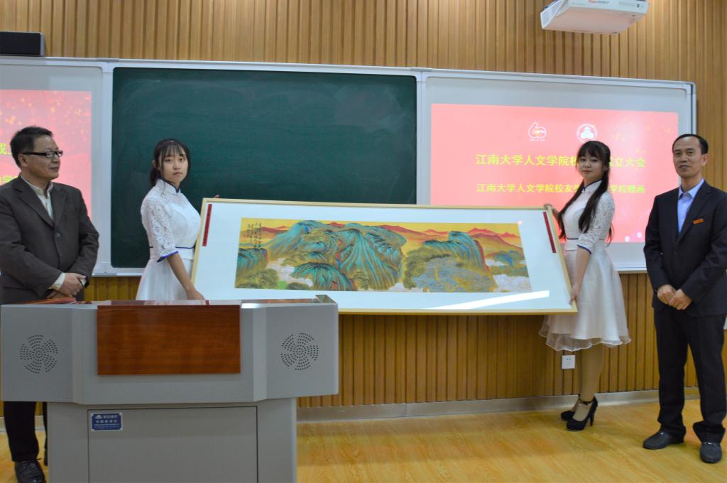 最后,校友会张剑芳理事向学院赠画,田院长代表学院接受画作。
