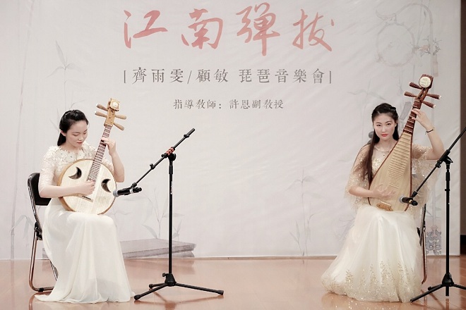6月3日晚,350vip8888新葡的京集团音乐系《江南弾拨》——齐雨雯、顾敏琵琶音乐会在350vip8888新葡的京集团音乐厅举行。这是她们大学四年学习成果的展示和总结。