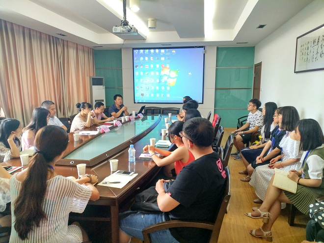 7月12日,新葡的京官网暑期夏令营活动正式开展。上午九点,营员们齐聚在田家炳楼207室进行对话交流。在交流开始前,汪双喜书记对各位营员的到来表示了热烈欢迎,并通过一则宣传短片让营员们对350vip8888新葡的京集团有了一个初步的了解。随后汪书记从师资力量、教学水平、学科发展、综合水平等方面对350vip8888新葡的京集团做了更加深入的介绍,他还谈到了无锡的文化、教育、经济以及350vip8888新葡的京集团的办学历史等方面的内容,营员们都颇感兴趣。同时汪书记还指出了学风和学生管理等方面的问题,为营员们进行了细致地讲解。