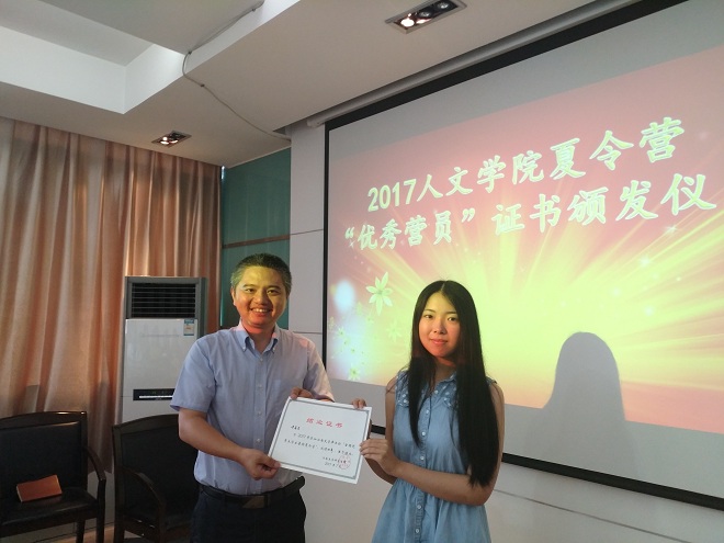 给优秀营员颁发证书