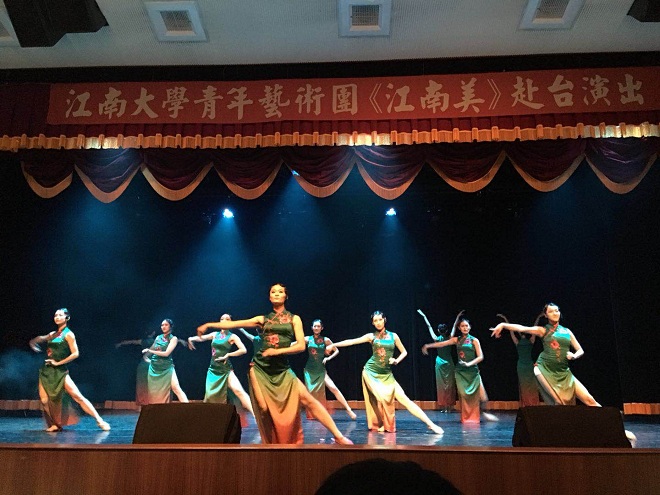 应台湾周凯剧场基金会邀请、中华文化联谊会组派,350vip8888新葡的京集团青年艺术团于2017年10月28日至11月6日赴台巡演《江南美》专场晚会。晚会由350vip8888新葡的京集团副院长符姗姗教授担任总导演,音乐、舞蹈专业师生共20人参加演出。