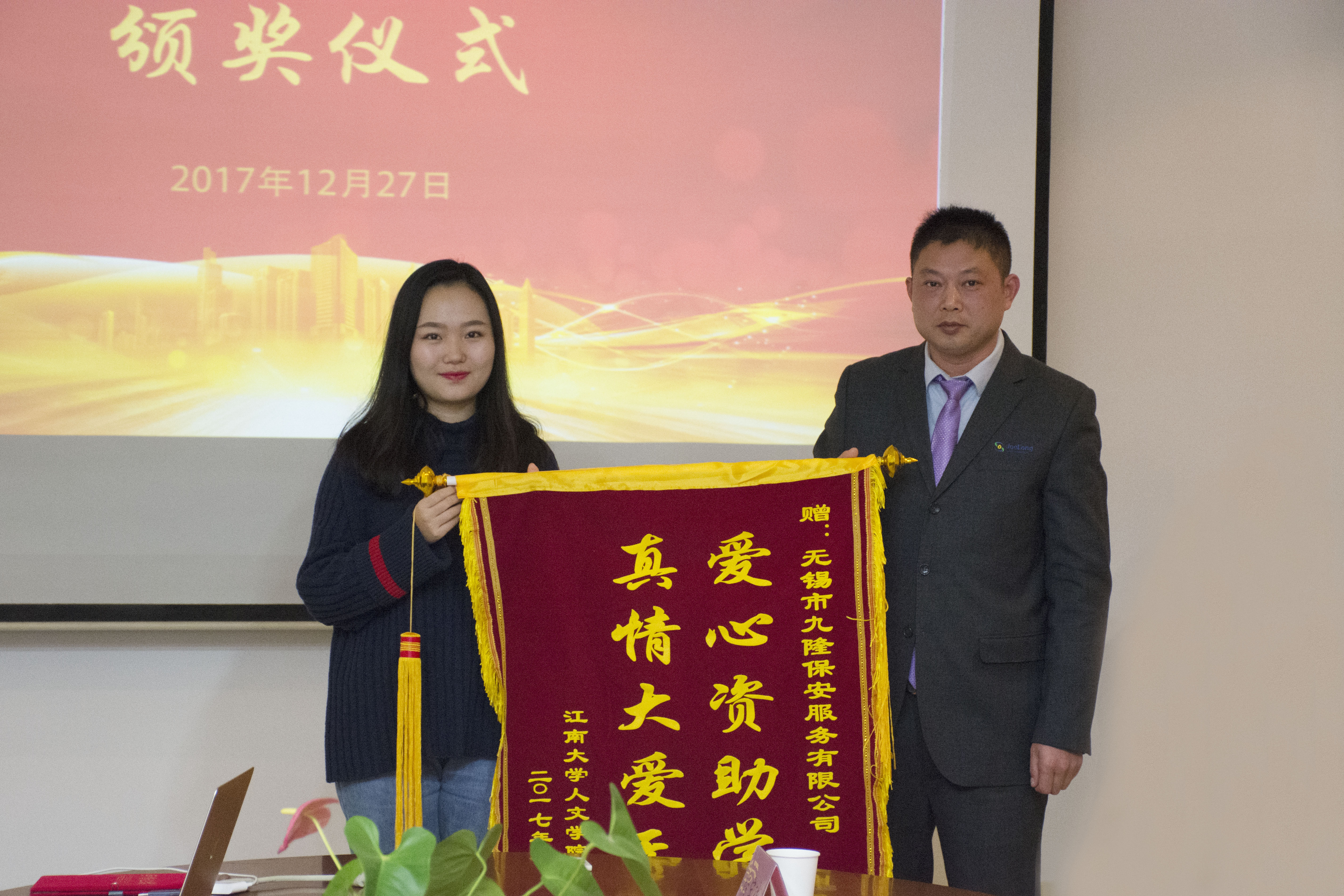 “九隆奖助学金”是无锡市九隆保安服务有限公司为了奖励品学兼优学生,资助家庭经济困难学生完成学业、自强成才而在新葡的京官网设立的奖助学金。希望获奖学生努力学习,立志成才,传递温暖,回报社会!
