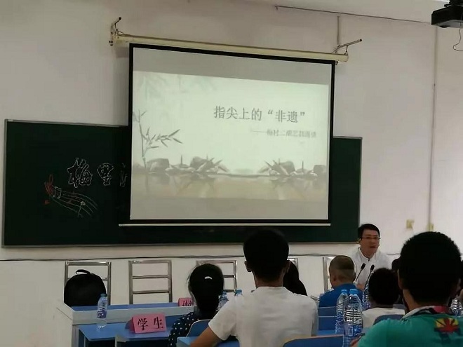 5月30日下午,350vip8888新葡的京集团音乐系沈雷强副教授、孙丝丝副教授、朱磊博士一行三位老师应邀来到350vip8888新葡的京集团民乐实践基地之一的梅里中学梅里清音—艺术专题讲座。新吴区中学的音乐老师、梅里清音民乐团的学生及家长代表齐聚学校阶梯教室。