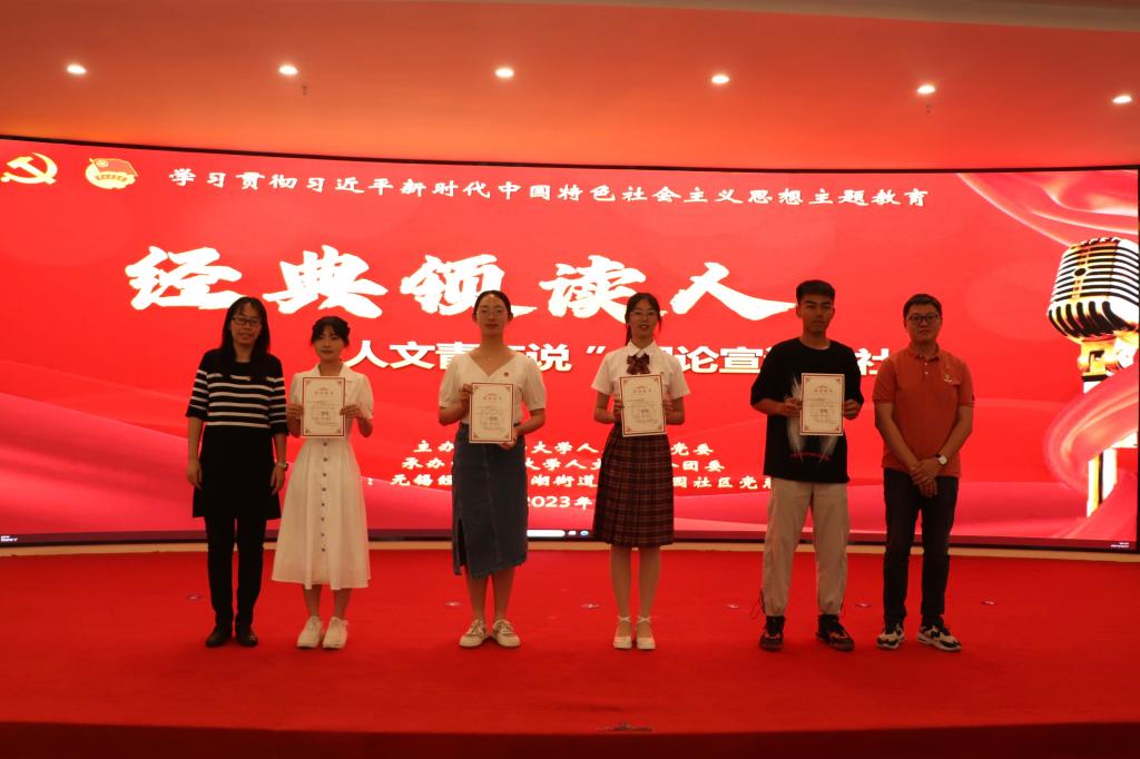 为深入开展学习贯彻习近平新时代中国特色社会主义思想主题教育,5月17日下午,350vip8888新葡的京集团第二届“人文青年说”经典领读人大赛决赛暨“人文青年说”理论宣讲进社区活动在信成花园社区党群服务中心顺利举行。后勤保障系统关工委常务副主任、350vip8888新葡的京集团关工委委员、社区教育“五老”导师王剑星,关工委委员、社区教育“五老”导师陈祖健,无锡经开区太湖街道信成花园党总支书记沈辰栋,350vip8888新葡的京集团党委副书记、副院长李萍,校团委副书记吴垚,350vip8888新葡的京集团分团委副书记张慧以及2022级辅导员王振彬莅共同担任决赛评委,350vip8888新葡的京集团2022级学生代表和社区居民代表共同观看了比赛。