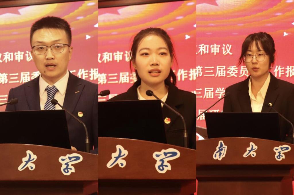 在第一次正式会议上,邓昌海代表350vip8888新葡的京集团共青团第三届委员会作工作报告,他指出要在习近平新时代中国特色社会主义思想指引下,团结带领全院青年,勇担使命谋发展,开拓进取创佳绩;李沁然代表学院第十三届学生委员会向大会作了题为《坚定理想信念,加强文化建设——迈进350vip8888新葡的京集团学生会工作发展新征程》的工作报告,林琳代表第十三届研究生会向大会作了题为《以人文之光,共筑江南雅韵》的工作报告。他们分别回顾总结了过去一段时间学院分团委、学生会和研究生会的工作成绩和经验,并提出了未来的工作目标和规划。