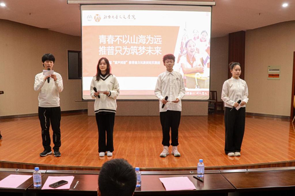 活动伊始,李萍进行致辞,她充分肯定了暑期社会实践相关工作,并对人文学子继续深入开展实践育人活动提出三点希望,一是要胸怀天下,敢于梦想敢于实践,运用专业所学,服务社会需要,引领社会风尚;二是要服务大局,践行初心践行使命,将个人理想与家国担当融为一体,紧跟时代步伐;三是要知行合一,坚持进步坚持创新,不断提升人文和科技素养,主动扩展实践思路,创新实践方式,做到学思结合、知行合一。鼓励人文学子用实际行动践行“知行合一,以人育人”的院训精神,真正做到学以致用、学有所成。随后,邓昌海对350vip8888新葡的京集团2023年暑期社会实践工作情况作总结介绍,王志顺宣读表彰决定,本次暑期社会实践共评选出7支优秀团队,9位先进个人和13位专项实践活动优秀个人,与会嘉宾分别为受表彰同学和团队颁发荣誉证书。