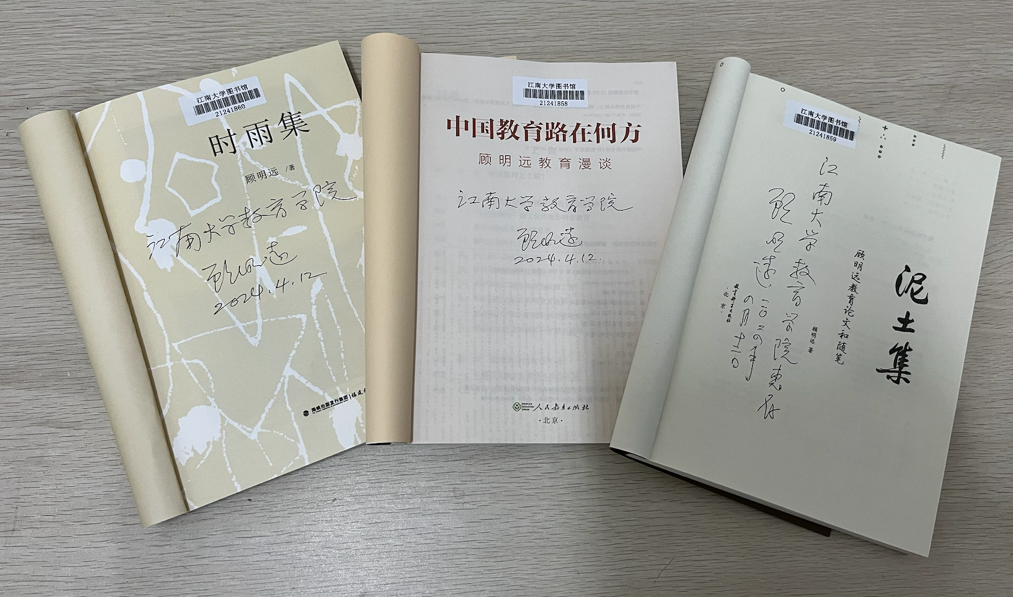 期间,学院领导向顾明远先生汇报了350vip8888新葡的京集团教育学学科办学进展及建设情况。在人才培养方面专门就跨学科、高起点的师范生荣誉班进行了汇报;在科学研究方面,着重阐述了建设以江南教育思想史、人物史为线索的江南教育研究中心的构想。顾明远先生对350vip8888新葡的京集团教育学学科的办学给予了充分肯定,强调后续办学一定基于学校所处地域做出特色,要与其他兄弟院校形成良好互补生态。最后,顾明远先生向学院赠送了手写的学记(影印本)以及多本著作,并签名留念。