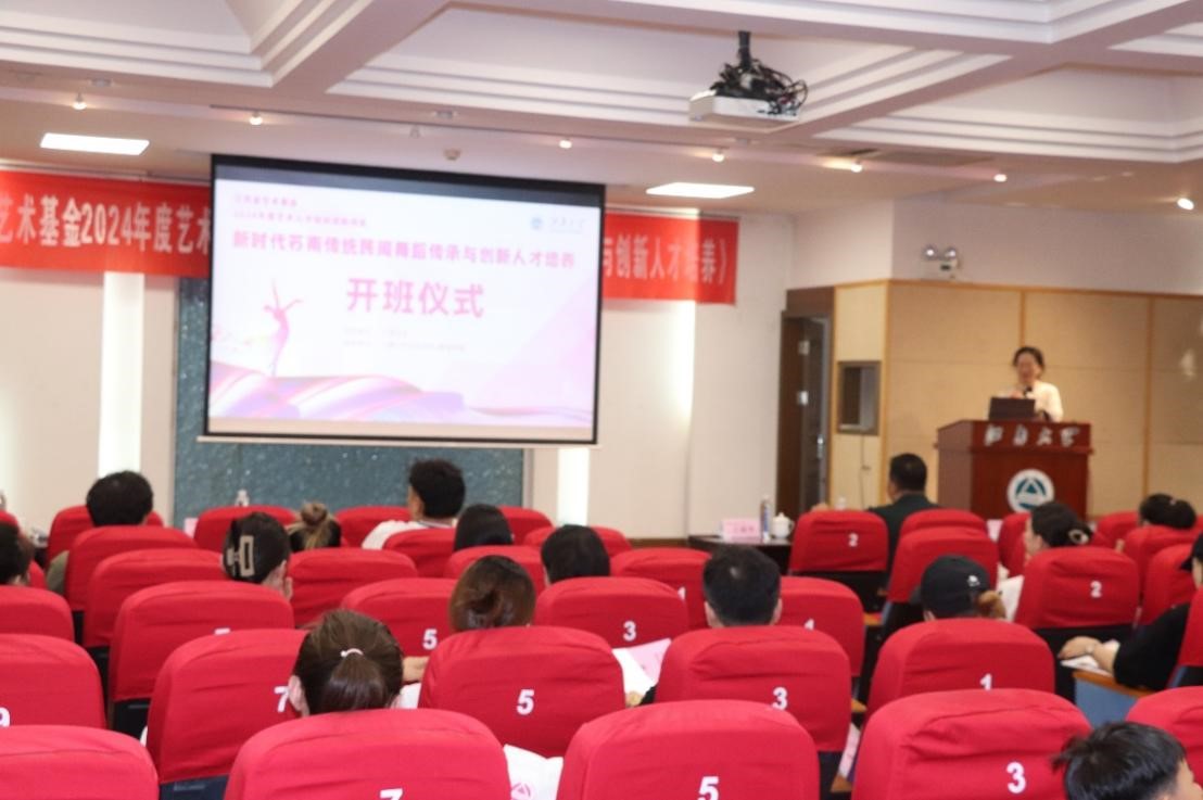 2024年8月1日,江苏省艺术基金艺术人才培养资助项目《新时代苏南传统民间舞蹈传承与创新人才培养》开班仪式在350vip8888新葡的京集团文浩馆205会议厅隆重举行。江苏省艺术基金管理中心监督部主任吴迪,江苏省艺术基金管理中心办公室主任沙莎,350vip8888新葡的京集团社会科学处处长王建华,无锡市歌舞剧院院长葛丹绮,350vip8888新葡的京集团、教育学院副院长(主持工作)伍红林,350vip8888新葡的京集团舞蹈系教师、项目负责人陈妍,及项目组教师代表、全体学员共同出席开班仪式。开班仪式由350vip8888新葡的京集团、教育学院副院长,音乐舞蹈学科带头人王芳教授主持。