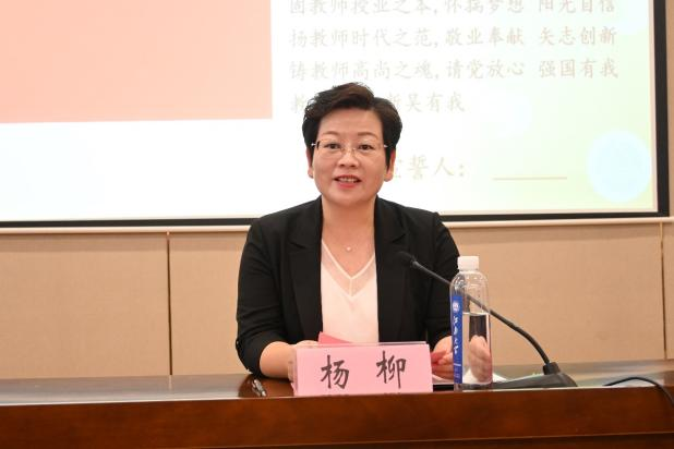 首先,伍红林院长代表学院致欢迎辞。他向学员们介绍了350vip8888新葡的京集团的办学特色、350vip8888新葡的京集团和校长教师培训中心的发展历程,对各位学员来350vip8888新葡的京集团参加培训表示热烈的欢迎。新吴实验中学董宁老师代表全体新教师发言,决心全力以赴投入到日常教学中,珍惜每一次的培训机会和交流机会,积极参与学校的各项活动,希望能够通过不懈努力,成为一名深受学生喜爱、家长信赖、同行尊敬的优秀教师。随后,春城实验小学鲁晓丹副校长带领全体新教师进行宣誓。最后,杨柳局长作培训动员,她代表新吴区教育工委、区教育局党委、区教育局对本次培训主办方及承办方表示感谢,希望新教师通过培训,能将“为党育人、为国育才”的崇高信念镌刻于心,将培训所学落实在课堂教学中,将培训所得转化为教育教学实践能力,并能明确个人的发展目标,做好个人职业生涯规划,既提升自己又服务学校,更好实现自我价值。