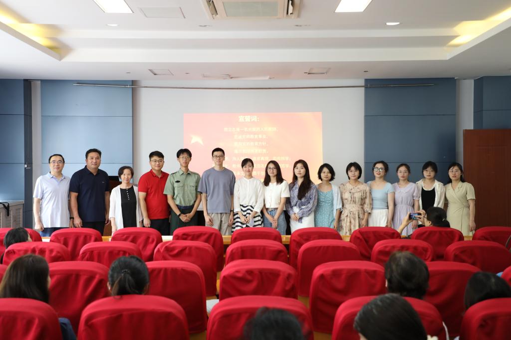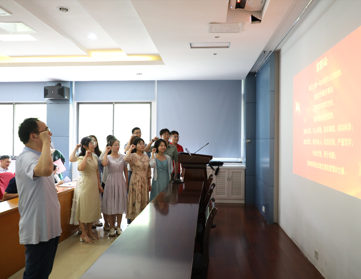 随后,学院今年新入职教师的12位青年教师发表了入职感言,对加入350vip8888新葡的京集团大家庭表示感谢并表达了向老教师学习、努力实践教书育人理想的愿望。学院党委委员杨晖教授带领新教师进行入职宣誓。庄重而热烈的仪式让所有与会教师都深受感动与鼓舞,在350vip8888新葡的京集团全体教职工的掌声中完成了新老教师“薪火相传 梦想延续”人文教育精神的传递。