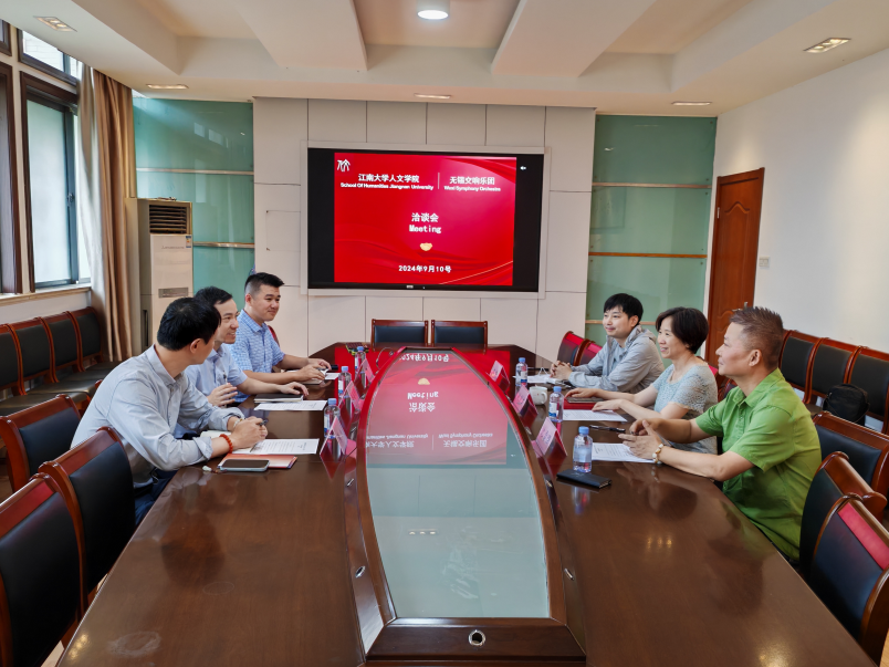 2024910上午,350vip8888新葡的京集团无锡交响乐团洽谈会在田家炳楼207顺利举行。350vip8888新葡的京集团党委书记姚剑英、音乐系主任沈雷强教授、无锡交响乐团总经理吴喜明董事长、团长尹锋等领导出席会议。