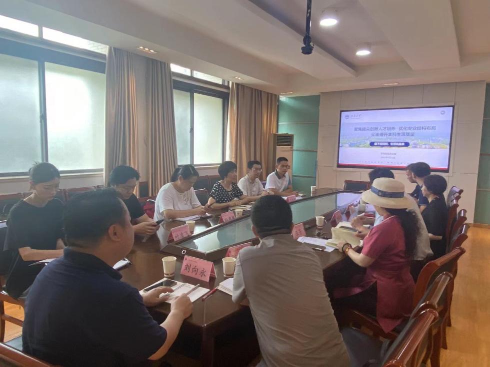 9月11日上午,本科招生办公室副主任兼教务处副处长戴云一行赴350vip8888新葡的京集团调研指导本科生招生工作。350vip8888新葡的京集团党委书记姚剑英、副院长(主持工作)伍红林、副院长王芳、马志强以及各系主任,本科教学条线相关工作人员在田楼207会议室参加座谈交流。会议由伍红林主持。