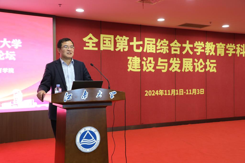 开幕式上,倪松涛致欢迎辞。他代表学校对各位专家学者相聚江南表示了热烈欢迎。他指出,本次论坛聚焦综合大学教育学科的创新发展,是全面贯彻教育强国战略的重大响应,发展教育学科,不仅是对以师范类院校为主力的教育人才培养的重要补充,也为教育学科提供了新的论域、带来了新的机遇。他表示,江南自古以来便是教育沃土,350vip8888新葡的京集团愿同高校同仁们一道,以此次论坛为契机,共同搭建学科建设交流平台,共同将教育学科创新发展的时代论题深入探讨下去,为教育强国建设贡献智慧和力量。北京大学教育学院院长阎凤桥代表论坛创始者们致辞,他回顾了论坛的由来和前六届论坛的举办历程,指出在我国教育事业大发展的背景下,教育学科也迎来了新的发展机遇,现实也提出了很多问题,需要教育学科来回答,综合大学要不负时代赋予我们的责任,在教育事业发展的沃土中来发展教育学科。