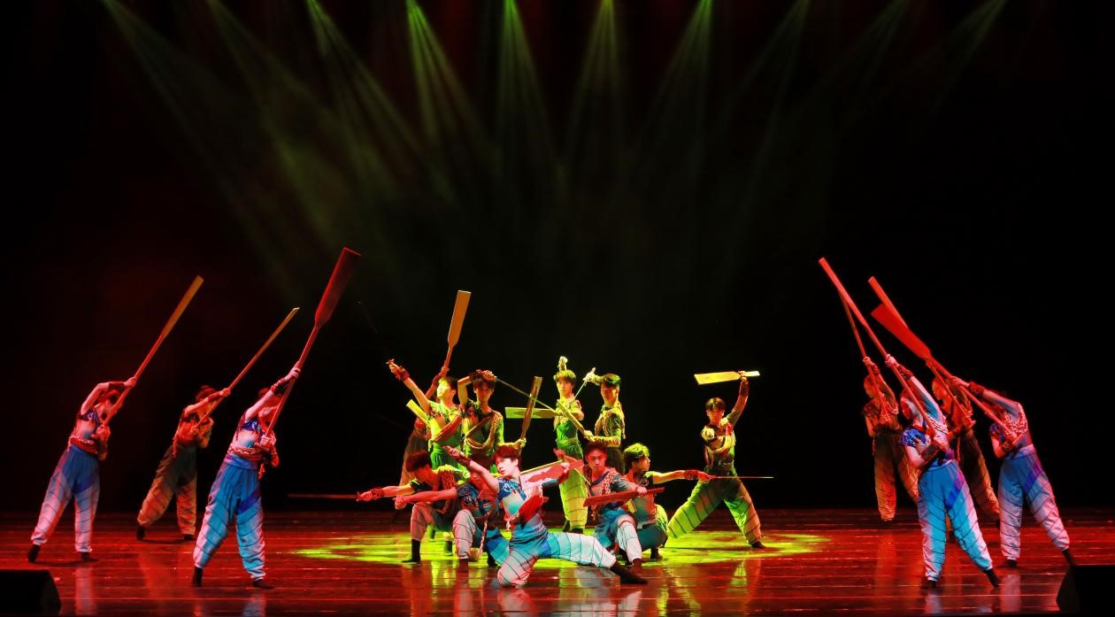 男女群舞《剑桨·遗韵》(选材于江苏省非遗民间舞蹈《渔舟剑桨》)