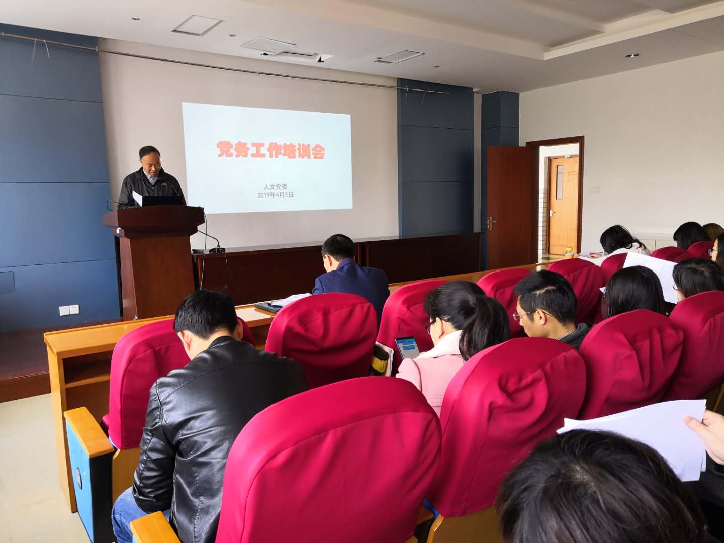 4月3日下午,新葡的京官网在田家炳楼209会议室举行党务工作专题培训会暨第四次党代会工作动员部署会。院党委书记沈贵鹏、党委副书记兼副院长吴宝锁、院党委秘书陆雪英以及学院各党支部书记委员等参加会议。会议由陆雪英主持。