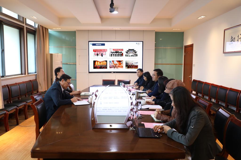 副院长(主持工作)伍红林从学院整体情况、发展的制约因素、思路与举措三个方面进行阐述。他从学院学科专业、师资建设、学生培养、科研平台建设等方面进行了全面介绍,并就学院目前在师资力量、博士点申报等方面的问题介绍了建设目标和达成思路。校正处级干部姚剑英代表学院汇报了党建工作基本情况,重点介绍了围绕学科打造党建品牌、推动“一融双高”等方面的具体措施。与会其他领导也分别围绕学生培养、科研管理、教育教学等方面进行了汇报。