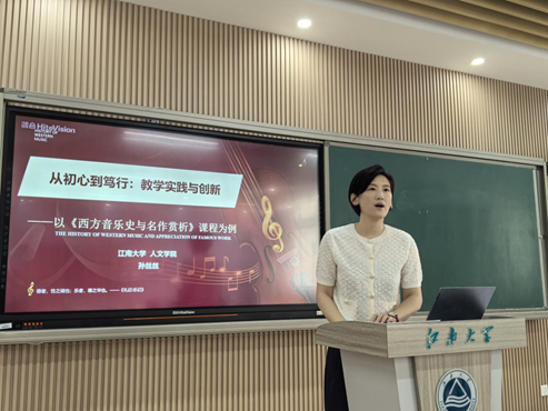 本次活动特邀第五届江苏省高校教师教学创新大赛特等奖获得者孙丝丝教授、二等奖获得者晋欣泉副教授围绕“教学进阶与竞赛指导”主题,为青年教师作培训辅导与交流。孙丝丝教授以获奖课程《西方音乐史与名作赏析》为切入口,讲述了课程由线下教学到混合式教学再到AI课程建设的发展路径,并结合相关建设节点,对参与全国高校青年教师教学竞赛、全国高校教师教学创新大赛等高水平竞赛的经验与策略进行了阐述,对青年教师提出了“7个注意,5个做法”。晋欣泉副教授以获奖课程《微视频设计与制作》为切入口,分享了自己参与比赛、打磨课程、赛课互促的进阶历程,并从读规则、写报告、提建议等方面对青年教师给出了细致实用的指导。