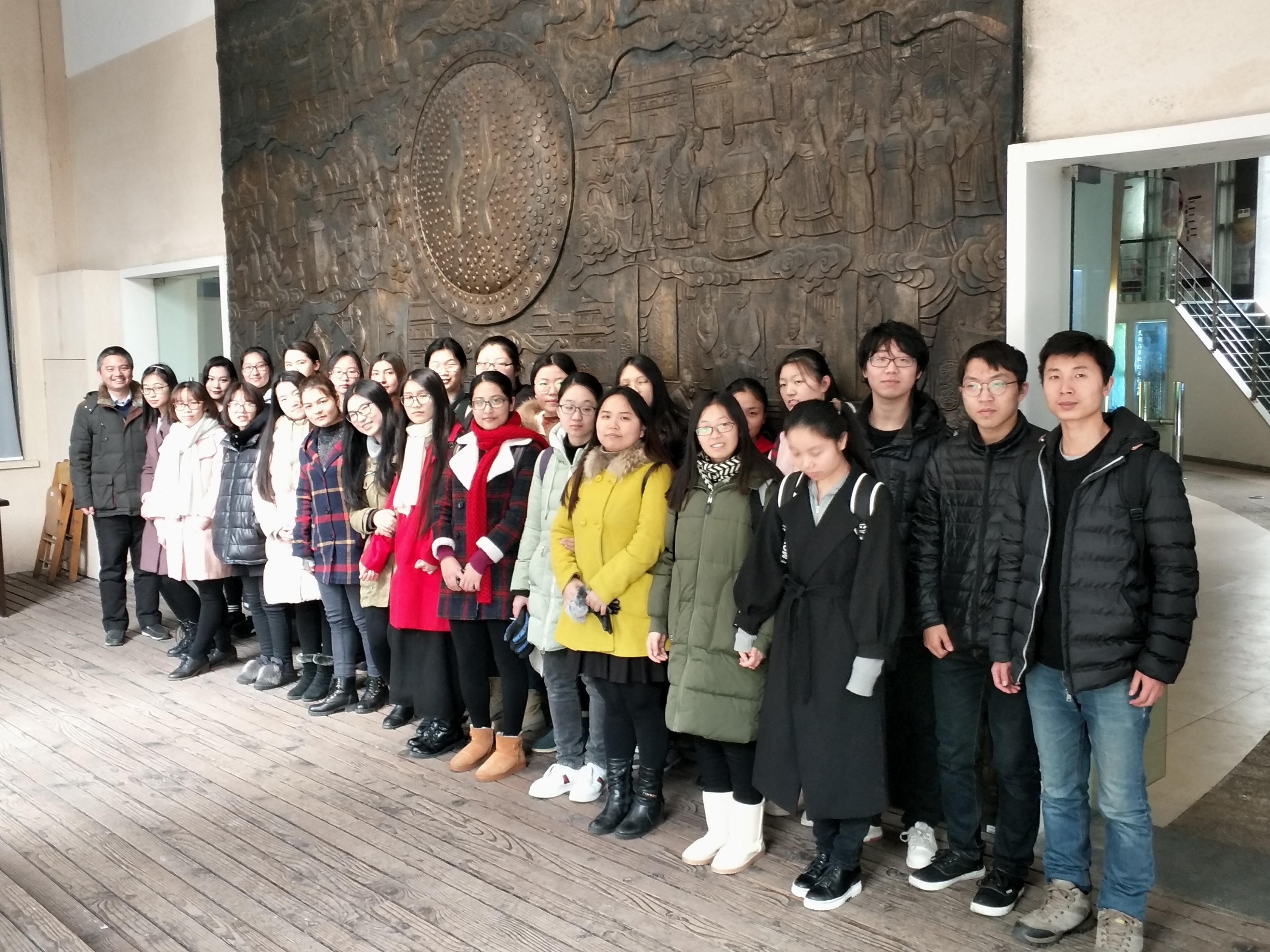 为充分利用校内文化场馆,增进不同学院、不同专业之间的跨学科交流,开阔学生视野,1月18日上午10时,350vip8888新葡的京集团副院长、汉语1501班班主任蔡爱国,带领汉语1501班全体同学们参观了我校酒文化博物馆。
