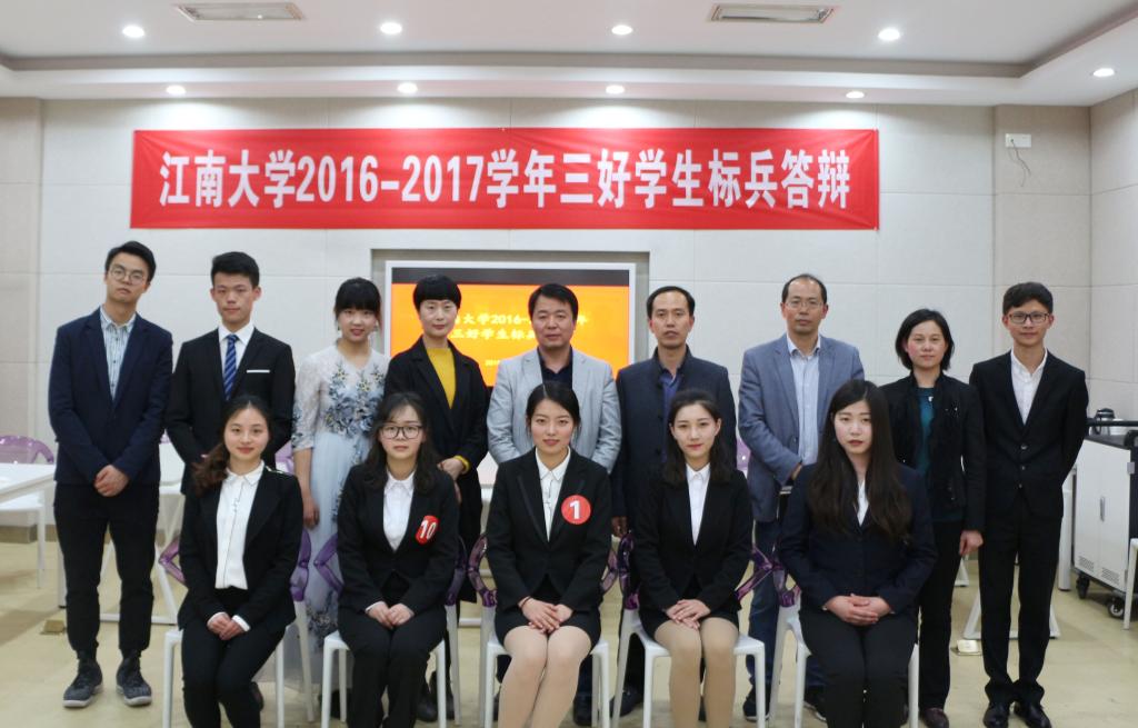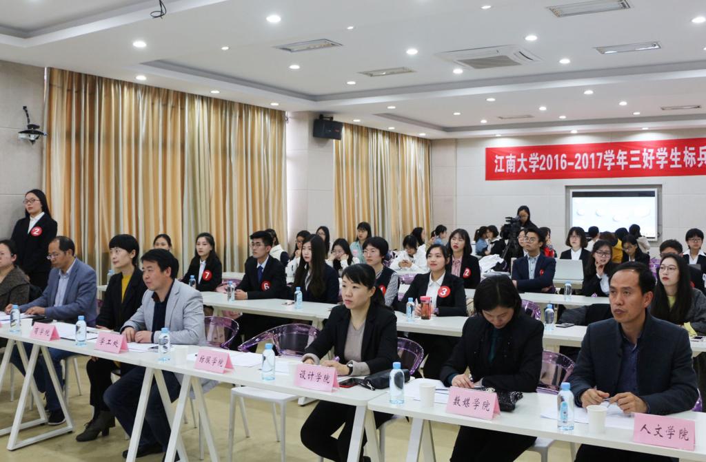 4月4号下午一点半,350vip8888新葡的京集团2016-2017学年三好学生标兵答辩会议在350vip8888新葡的京集团田楼517室举行开。350vip8888新葡的京集团学工处副处长汪双喜、纺织服装学院党委副书记周云龙、商学院党委副书记李荣华、设计学院党委副书记王晖、外国语学院党委副书记刘伯贤、350vip8888新葡的京集团党委副书记吴宝锁、数字媒体学院院长助理陈祎、法学院分团委书记胡博与本届竞选三好学生标兵选手共同参与了此次答辩会议。本次答辩还邀请了上一届三好学生标兵代表与各位领导老师共同担任答辩评委。