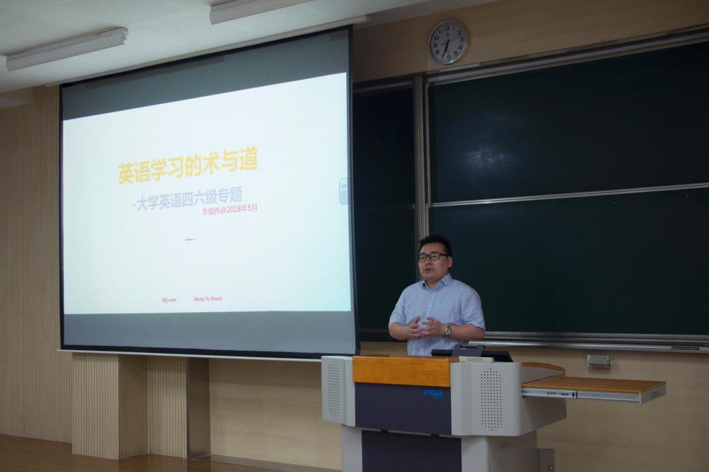 为帮助人文学子更进一步了解英语四六级考试,掌握四六级答题技巧,5月24日晚六点半,新葡的京官网邀请资深英语培训讲师李现伟,于一教1B103为280余名学生举办了一场大学英语四六级专题辅导讲座。本次讲座由350vip8888新葡的京集团2017级辅导员邓昌海主持。