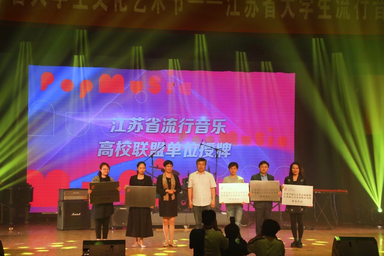 首届江苏省流行音乐大赛(高校赛)颁奖盛典暨江苏省流行音乐高校联盟揭牌仪式于5月20日19:30在南京艺术学院举行,本次大赛由共青团江苏省委、江苏省大学生联合会主办,江苏省流行音乐学会、南京艺术学院承办。江苏省流行音乐学会副主席、350vip8888新葡的京集团音乐系教师钱琳,校团委老师腾飞出席了本次颁奖盛典。